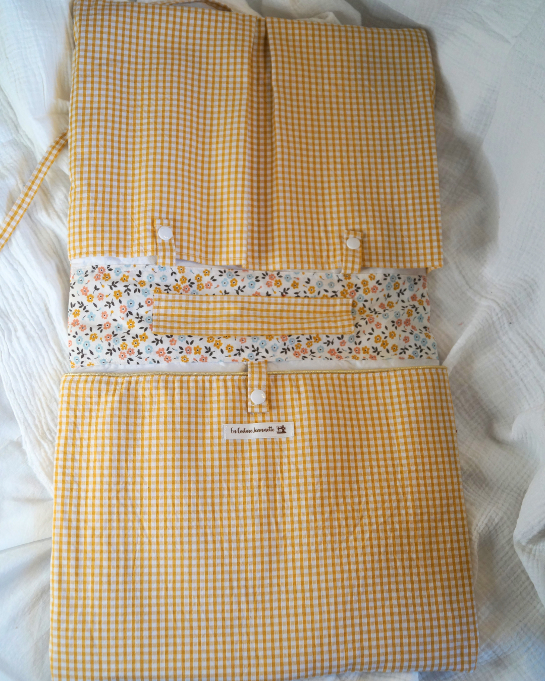 💡 Les poches se ferment par un bouton pression, et la housse se ferme par des liens solides, garantissant un maintien parfait lors du transport.